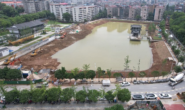 6月24日,在“兩湖”綜合治理工程調(diào)蓄池及雨水循環(huán)中心工程現(xiàn)場,工人在進(jìn)行掃尾工作。工程建成后,初期雨水將實現(xiàn)就地處理,達(dá)標(biāo)后直接補充湖水,讓兩湖煥發(fā)新的生機與活力。工程除了水處理及辦公功能外,還將為市民呈上全新的生態(tài)文化景觀,增添又一休閑好去處。